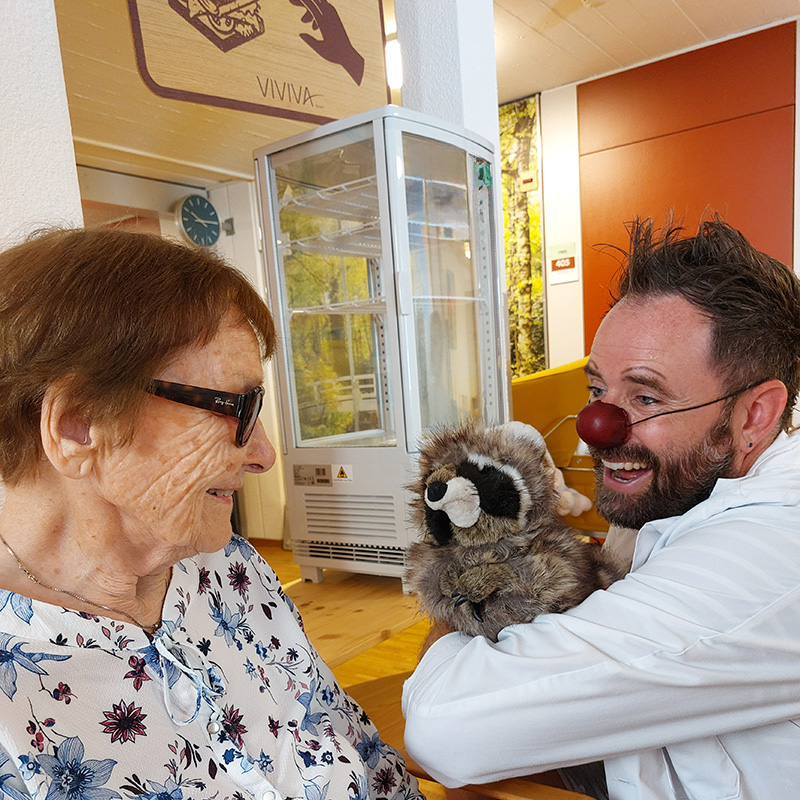 Willkommen auf unseren geschützten, spezialisierten Demenzabteilungen, an einem Ort der Geborgenheit, wo Verständnis, Respekt und Fürsorge im Mittelpunkt stehen. Wir nehmen die einzelnen Menschen mit ihrer Lebensgeschichte, ihren Gewohnheiten und Bedürfnissen ernst und begleiten sie achtsam im Alltag. Tiergestützte Aktivierung und humorvolle Begegnungen sorgen für Momente der Leichtigkeit dafür, dass man sich zuhause fühlt.